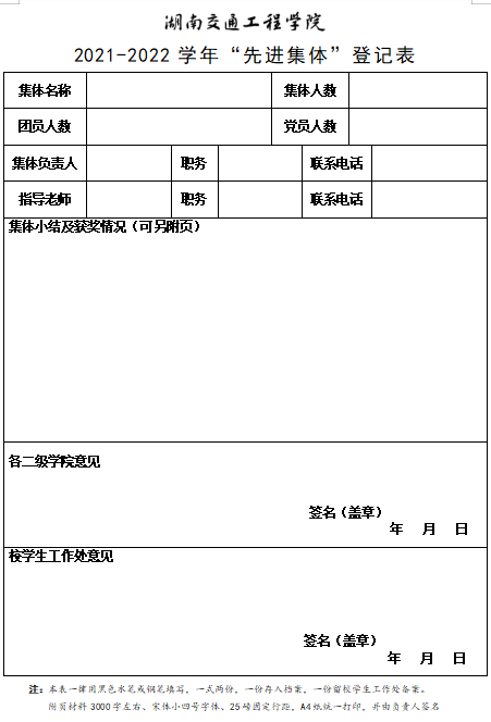 新葡萄8883官网AMG官网2021-2022学年“先进集体”登记表
