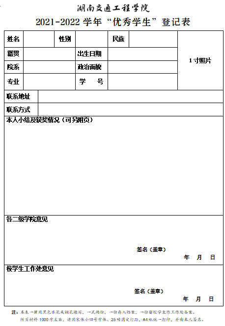 新葡萄8883官网AMG官网2021-2022学年“优秀学生”登记表