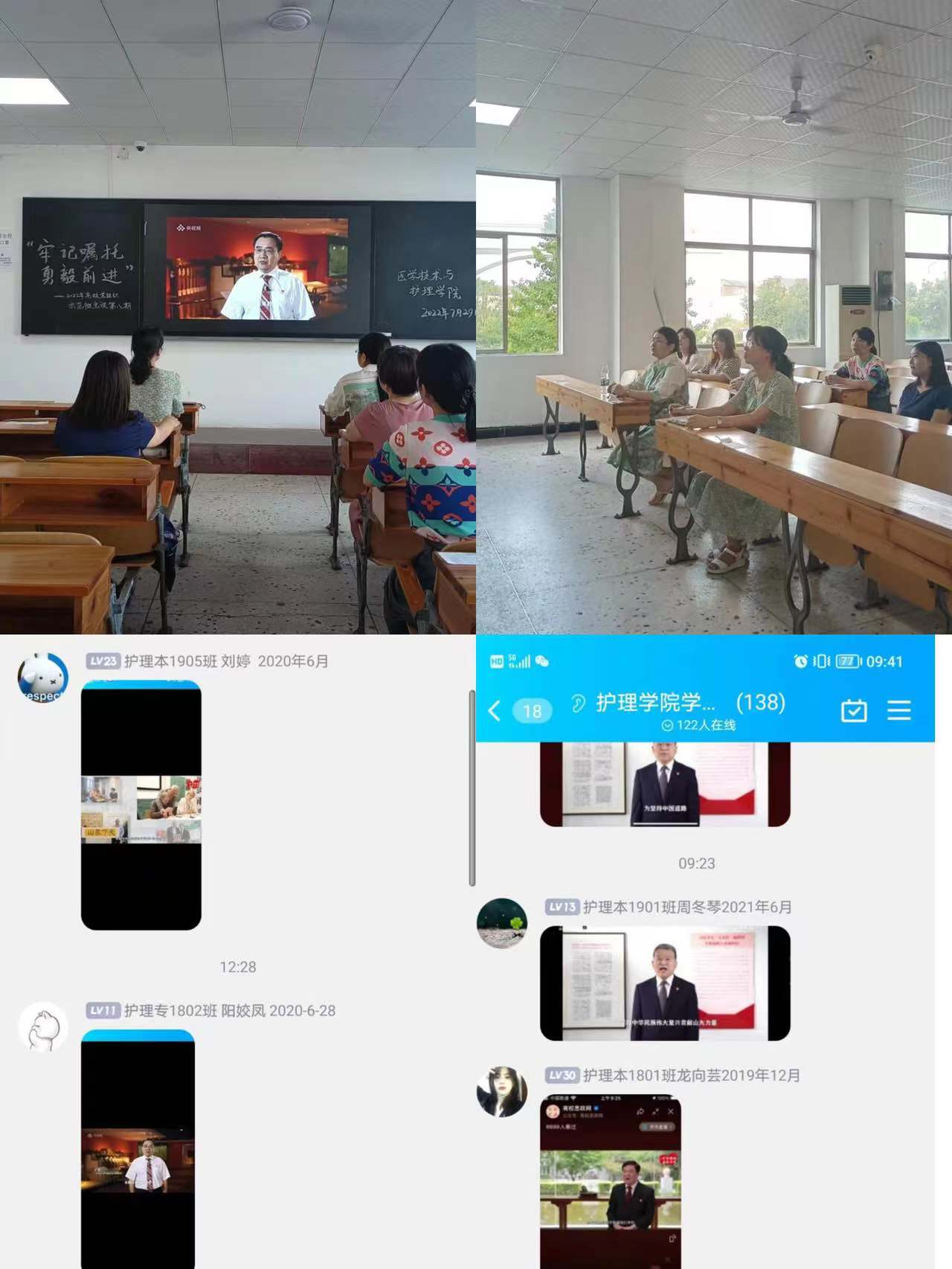 为积极贯彻落实习近平总书记关于教育的重要论述、重要讲话、重要回信精神及迎接党的二十的顺利召开。2022年7月29日上午九点医学技术与护理学院组织在校党员在106教室和离校党员于线上观看高校党组织示范微课展播第八讲“牢记嘱咐 勇毅前进”党课。