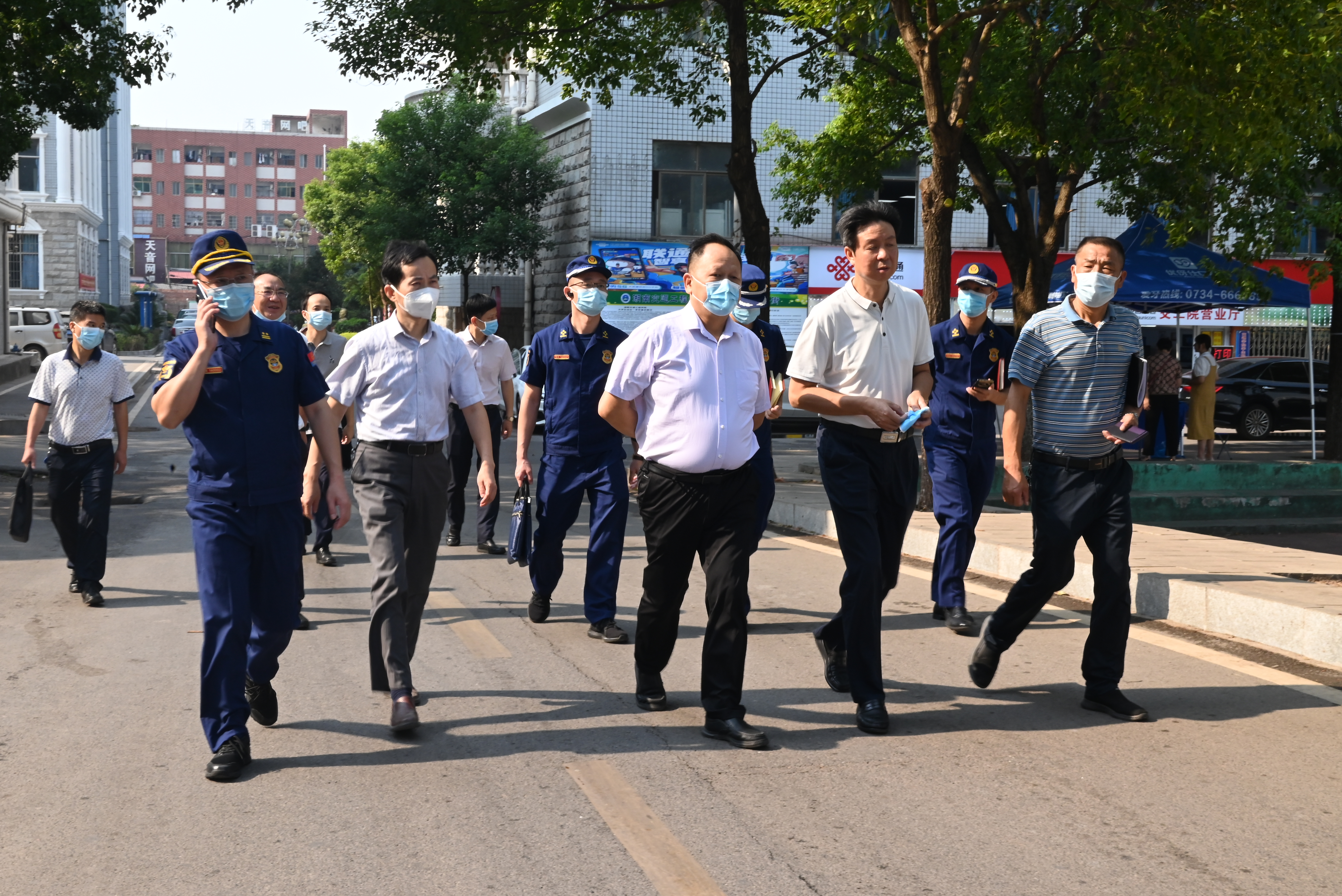 本网讯    9月28日上午,衡阳市副市长谢宏一行来校检查消防安全工作,对消防安全管理、宿舍管理、校园环境建设提出指导意见。市政府副秘书长罗胜利,市消防救援支队政委唐德尚、法工科科长孔建国、高新消防办大队长何亚华、防火监督科工程师陈泽鹏,市教育局秘书科科长蒋阳平等参加检查。学校董事长刘福生、党委书记刘文君、副校长余孟辉等陪同检查。