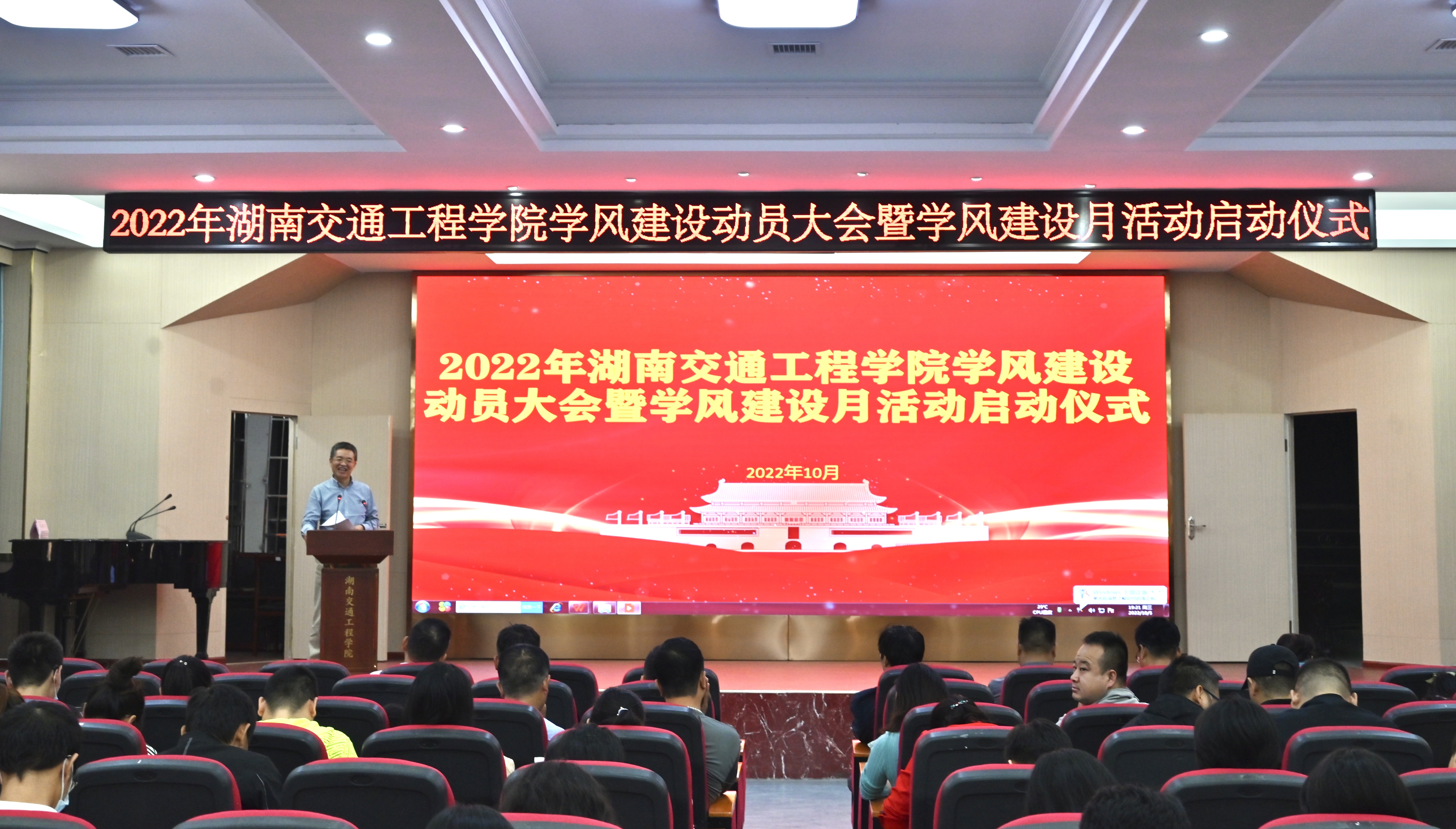 本网讯 (学生记者 易石基)为了切实加强学风建设,落实“立德树人”根本任务,营造良好育人生态,以优良学风迎接教育部本科教学工作合格评估,学校于2022年10月5日晚7点在航母楼101会议室举行学风建设动员大会暨学风建设月活动启动仪式。副校长余孟辉、刘初生,学生工作处处长刘海滨,校团委书记漆在林,各二级学院正副书记,全体辅导员,学生干事参加会议。大会由刘海滨主持。