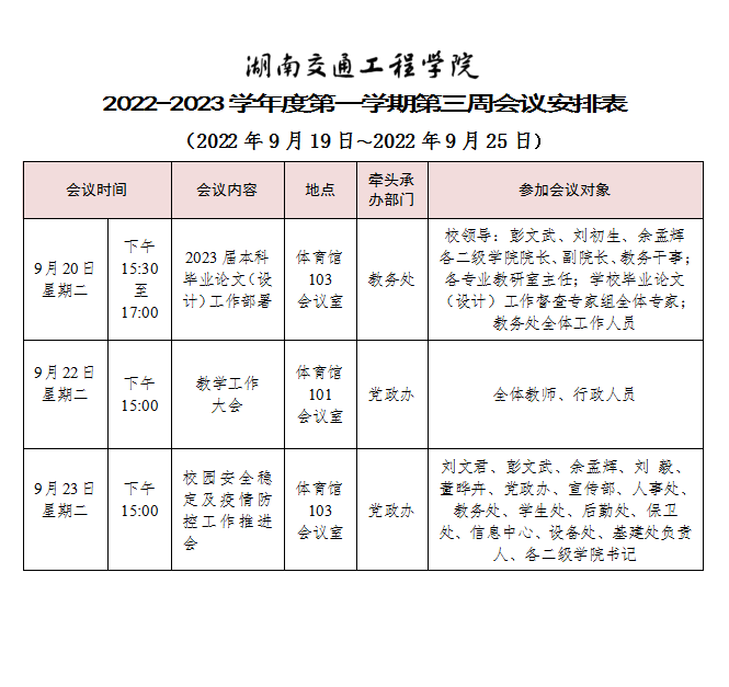 新葡萄8883官网AMG官网2022-2023学年度第一学期第三周会议安排表