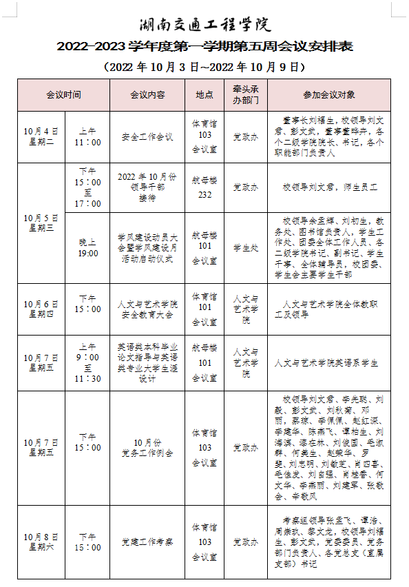 新葡萄8883官网AMG官网2022-2023学年度第一学期第五周会议安排表